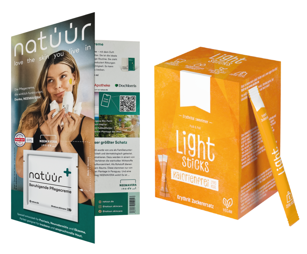 ✔ Sichere Befestigung von Sachets auf Faltkarten für eine ansprechende Produktpräsentation